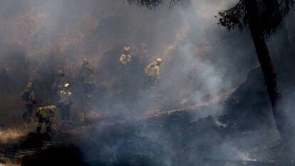 Llegó la noche y la veintena de medios aéreos tuvo que quedarse en tierra. La batalla parecía perdida. Sin embargo, el viento amainó y la temperatura descendió entre 10 grados y 15 grados. Esa tregua ha sido aprovechada por los más de 200 integrantes del dispositivo para cercar los focos, mantenerlos en su zona y evitar rebrotes. Es lo que técnicamente se conoce por fuego perimetrado.