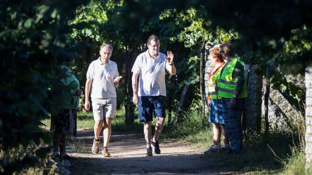 El presidente del Gobierno comenzó su primer día de descanso haciendo la caminata diaria por el interior del Valle de O Salnés, acompañado como de costumbre por el presidente del puerto de Marín, José Benito Suárez, marido de la presidenta del Congreso Ana Pastor.