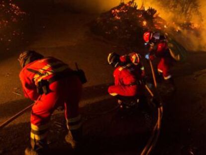 Cuando llegaron al final del pueblo la Guardia Civil les advirtió de que debían abandonar los coches y refugiarse. No había escapatoria: las llamas rodeaban ya el pueblo, penetraban en los colindantes y bloqueaban cualquier posible salida. Los acogió un vecino en el bajo de su casa junto a cerca de una veintena más de personas. No se movieron de allí hasta el día siguiente. “Éramos como refugiados en una guerra; la mayoría gente muy mayor, de 90 y 95 años, todos llorando”. “Aunque el vecino nos ofreció camas solo durmió mi hijo, que cayó rendido”, relata la mujer las horas de la desolación de una noche infernal. “No sabíamos qué hacer: aquí no llegaron ni bomberos, ni brigadistas y el fuego era imparable y se iba creciendo; solo había cuatro guardias civiles para hacerse cargo de una población anciana y con problemas de movilidad”.
