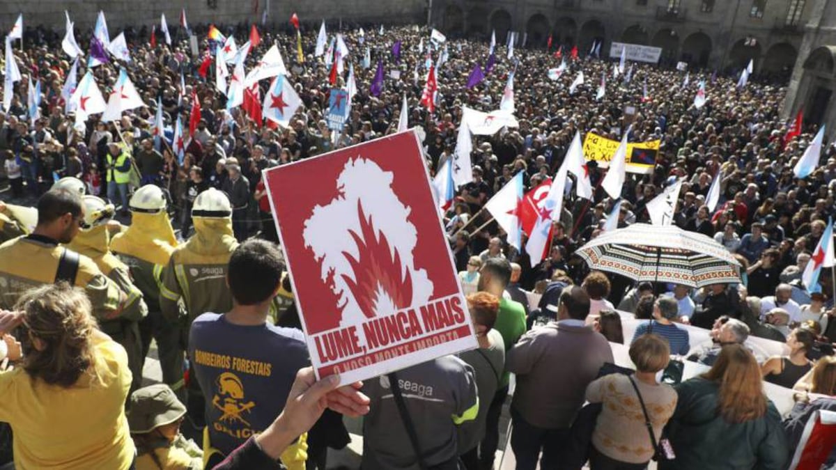 Casi 15 años después de que el movimiento Nunca Máis saliese a la calle en diciembre de 2002 para reclamar responsabilidades por la catástrofe del Prestige que inundó de chapapote las costas gallegas, unas 10.000 personas han secundado la marcha, según los organizadores, que ha recuperado el lema de aquella movilización para protestar contra la ola de más de 150 incendios que el fin de semana pasado provocaron la muerte de cuatro personas y dejaron un balance de 35.500 hectáreas calcinadas.