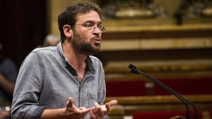 La fractura entre la dirección de Podemos y los responsables de la marca catalana del partido se ha ahondado todavía más este sábado después de que Albano Dante, secretario general de Podem, afirmase que participar en las elecciones autonómicas del 21 de diciembre sería una "enorme contradicción". "Estaríamos aceptando de lleno el 155", ha afirmado en una entrevista en Catalunya Ràdio. El razonamiento de Dante es que la formación no puede "salir a correr" a unos comicios "como si no hubiera pasado nada". Tampoco ha descartado una coalición con Junts pel Sí y la CUP en Rac1. Además, la sintonía de la diputada Àngels Martínez Castells con los promotores del desafío secesionista también han causado un profundo malestar en el partido que lidera Pablo Iglesias. "¡Buen día República! El BOE dice misa: el presidente de la República catalana es Puigdemont", ha escrito la parlamentaria en su cuenta de Twitter, lejos de las tesis de Podemos. El secretario de Organización, Pablo Echenique, ha reconvenido a ambos.