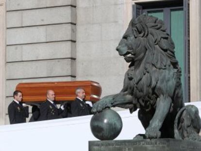 Manuel Marín ha recibido el homenaje de las instituciones y de los ciudadanos en el mismo Salón de Pasos Perdidos donde, con su verbo sereno y dialogante, dejó aquellos testimonios de su vocación democrática. Nuestra celebración de la Constitución es también la suya. Y el sentido adiós de quienes le apreciábamos con sinceridad la mejor despedida que puede recibir un hombre que trabajó siempre pensando en España y en los españoles.