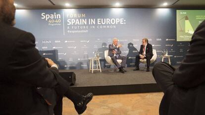 Jean-Claude Juncker, presidente de la Comisión Europea, ha cargado este miércoles contra los nacionalismos en el Foro España en Europa: un futuro en común, organizado por EL PAÍS en Bruselas, en el marco del Ciclo España 40-40, y ha citado al expresidente francés François Mitterrand: "El nacionalismo es la guerra”. El expresidente Felipe González, por su parte, ha calificado las corrientes nacionalistas de "virus" y ha pedido, con Juncker, una Europa eficaz que dé respuestas a los ciudadanos. El foro se ha abierto con la conversación entre Mario Vargas Llosa, Nobel de Literatura, y Juan Luis Cebrián, académico y presidente de EL PAÍS, que ha hablado del choque entre ilustración e identidad como la colisión que afrontan España y Europa a corto plazo. "Si el nacionalismo se puede construir, también se puede desmontar", ha señalado Vargas Llosa. Ha cerrado el foro, organizado con el patrocinio de BBVA, Iberdrola, Iberia, NH Hotel Group, Repsol, Santander y Telefónica, el ministro de Exteriores, Alfonso Dastis, reivindicando la complementariedad de España y Europa.