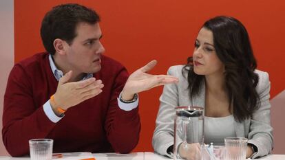 Albert Rivera, junto a Inés Arrimadas, durante la reunión del Comité Ejecutivo Nacional de Ciudadanos. En vídeo, cinco iniciativas parlamentarias desbloqueadas por Ciudadanos.Vídeo: J.J.GUILLEN (EFE) / EPV