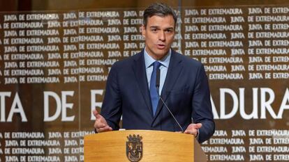 El secretario general del PSOE ha hecho estas reflexiones desde Extremadura, a donde se ha desplazado para su primera visita institucional al presidente extremeño, el socialista Guillermo Fernández Vara, desde su victoria en las primarias de las que se cumple el próximo lunes el primer aniversario. Fernandez Vara ha puesto en valor la España autonómica. “Todos los presidentes autonómicos somos Estado”, ha defendido, y por eso cree que hay que alcanzar un acuerdo sobre la financiación autonómica, porque refuerza al Estado. Sánchez y Fernández Vara han reclamado al Gobierno que convoque el Consejo de Política Fiscal y Financiera y que presente de una vez su propuesta de modelo de financiación.