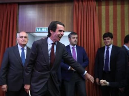 De otro modo, no se explica que pretenda convertirse en el punto de juntura de la pujanza de Ciudadanos y de la decadencia del PP. Por un lado, trata de apropiarse de un fenómeno político al que ha sido completamente ajeno. Y, por otro, se sustrae a los motivos oscuros que han deteriorado la nave nodriza del PP. La justificación que se desprende de semejante excentricidad serían la unidad territorial y el ventilador con que debe airearse la bandera. Aznar ha considerado a Rajoy un político pusilánime y blando. Y le ha atribuido toda la negligencia imaginable en la gestión de la crisis catalana, pero el monstruo del soberanismo no hubiera crecido tanto sin la dieta proteica que le administró Aznar con los pactos del Majestic y otras concesiones de autogobierno. Se diría que el expresidente es víctima del síndrome del bigote ausente. Hace un esfuerzo para borrárselo del rostro, pero no consigue disiparlo, como si fuera la sombra de su pasado y el rastro inextinguible del fantasma de Canterville.