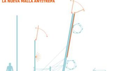 El primer freno español que se encuentran los inmigrantes al llegar a la frontera es la alambrada que cerca las dos ciudades autónomas. La de Ceuta la compone una doble valla de 6,10 metros de altura y 8,2 kilómetros de largo, vigilada con sensores y 37 cámaras de seguridad controladas por la Guardia Civil —entre ellas, una térmica ubicada en el monte Hacho, a 3,2 millas náuticas del paso de Tarajal—. En Melilla, donde la orografía más llana hace más habituales los saltos, existe una triple verja; también de seis metros, tras duplicarse su altura en 2005, y casi 10 kilómetros de largo. En ambas, hay concertinas.