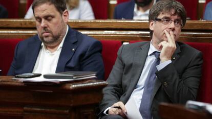 Los dos principales cabecillas del proceso separatista catalán, el ex presidente Carles Puigdemont y su ex segundo en el Gobierno de la Generalitat Oriol Junqueras, quedarán suspendidos como diputados autonómicos previsiblemente la semana próxima por orden del juez del Tribunal Supremo Pablo Llarena, instructor del procés. Esto significa que no podrán ejercer un cargo público y que, por tanto, deberá correr la lista de sus respectivas formaciones independentistas si quieren mantener la mayoría absoluta en el Parlament.