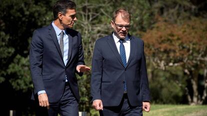 El presidente del gobierno Pedro Sánchez, durante su reunión con el primer ministro de Finlandia, Juha Sipilä, este jueves en el palacio de La Moncloa en Madrid.Vídeo: LUCA PIERGIOVANNI (EFE) / ATLAS