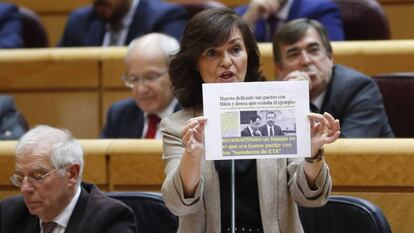 Con esta iniciativa, heredera de una similar que estuvo vigente en el segundo Gobierno de José Luis Rodríguez Zapatero, el Ejecutivo de Pedro Sánchez pretende impregnar sus políticas del respeto a los derechos humanos, de cuya declaración universal se cumplen ahora 70 años. “Se trata de prevenir antes de llegar a lo irremediable”, resumió la vicepresidenta durante unas jornadas sobre derechos humanos organizadas en Casa América y en las que también intervinieron la alta comisionada de la ONU en esta materia, Michelle Bachelet, y el ministro de Exteriores, Josep Borrell. El plan permitirá aplicar al derecho español “los tratados internacionales que obligan a seguir avanzando en la prevención y la protección de los derechos humanos en el mundo", añadió Carmen Calvo.