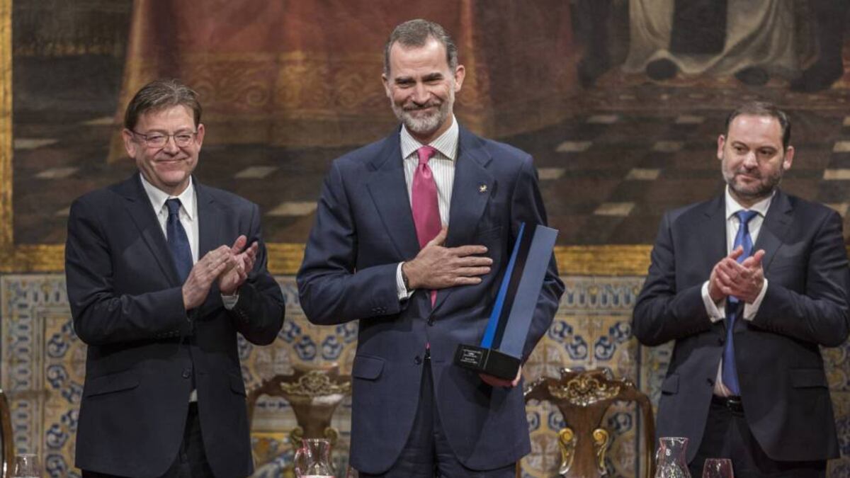 En un Saló de Corts, en el que le han acompañado el ministro de Fomento, José Luis Ábalos, varios miembros del Gobierno valenciano y el alcalde de Valencia, Joan Ribó, entre otras autoridades, el Rey ha considerado “un honor” recibir este premio, en cuya concesión ha detectado “mucho de afecto y cariño” y que ha aceptado “con humildad y profunda gratitud”. “Como un reconocimiento a la Corona”, que “tiene entre sus fundamentales razones de ser la promoción y la defensa de los valores constitucionales”. Felipe VI ha querido, asimismo, renovar su "firme compromiso con los fundamentales" de la España democrática.