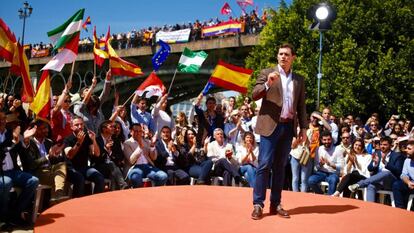 Rivera ha tratado en todo momento de diferenciarse de populares y socialistas para tratar de atraer el voto de los indecisos. A ambas formaciones ha reprochado su connivencia con los partidos nacionalistas para gobernar. “Yo no voy a trabajar por los separatistas, como PP y PSOE”, ha asegurado. El dirigente ha marcado distancias con ambas formaciones en materia educativa, de lucha contra la corrupción y en pensiones. “Solo escucho a Sánchez hablar de rebajarlas un euro y a Casado de reducirlas, pero no hablan del futuro de las pensiones del mañana”, ha señalado. Los partidos nacionalistas también han estado en el punto de mira del dirigente de Ciudadanos. El primer punto de sus 10 compromisos se centra en garantizar la igualdad territorial, donde se blindan las competencias del Estado y se garantiza la eliminación del cupo vasco, el adoctrinamiento en las escuelas o una asignatura de la Constitución. “Eso solo le da miedo a los nacionalistas, a los que tienen chiringuitos educativos porque ya no van a poder hacer lo que les dé la gana en las escuelas”.