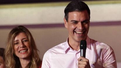 Rodeado de mujeres líderes como la presidenta del PSOE, la vicepresidenta del Gobierno, la vicesecretaria general del partido y acompañado de su esposa, Sánchez ha recordado a la imagen del ganador de las primarias socialistas (camisa blanca arremangada, micrófono en mano). “No vamos a poner cordones sanitarios” ha sido un mensaje encriptado y calculadamente ambiguo en una noche en la que, cautamente, no ha pronunciado la palabra izquierda.