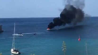 Los tripulantes son dos hombres, padre e hijo, y viven en Madrid. Tras declararse el fuego han saltado al agua y han sido rescatados. La embarcación, una lancha de unos diez metros de eslora, se ha hundido.