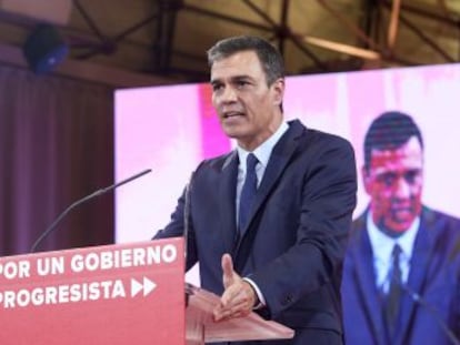 El presidente del Gobierno en funciones, Pedro Sánchez, en el acto de su partido.Vídeo: I. Herrero