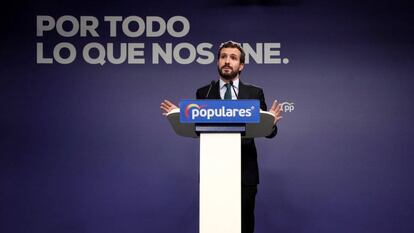“Para este viaje no hacían falta alforjas”, declaró Pablo Casado tras conocer el acuerdo entre el PSOE y Unidas Podemos. El pacto, sin embargo, quitó este martes toneladas de presión sobre el PP, que había convocado a su comité ejecutivo nacional, entre otras cosas, para aplacar cualquier debate sobre una abstención que facilitase la investidura de Pedro Sánchez. El líder popular definió el embrión del nuevo Ejecutivo como “Gobierno de radicales” y anunció una “oposición firme”.