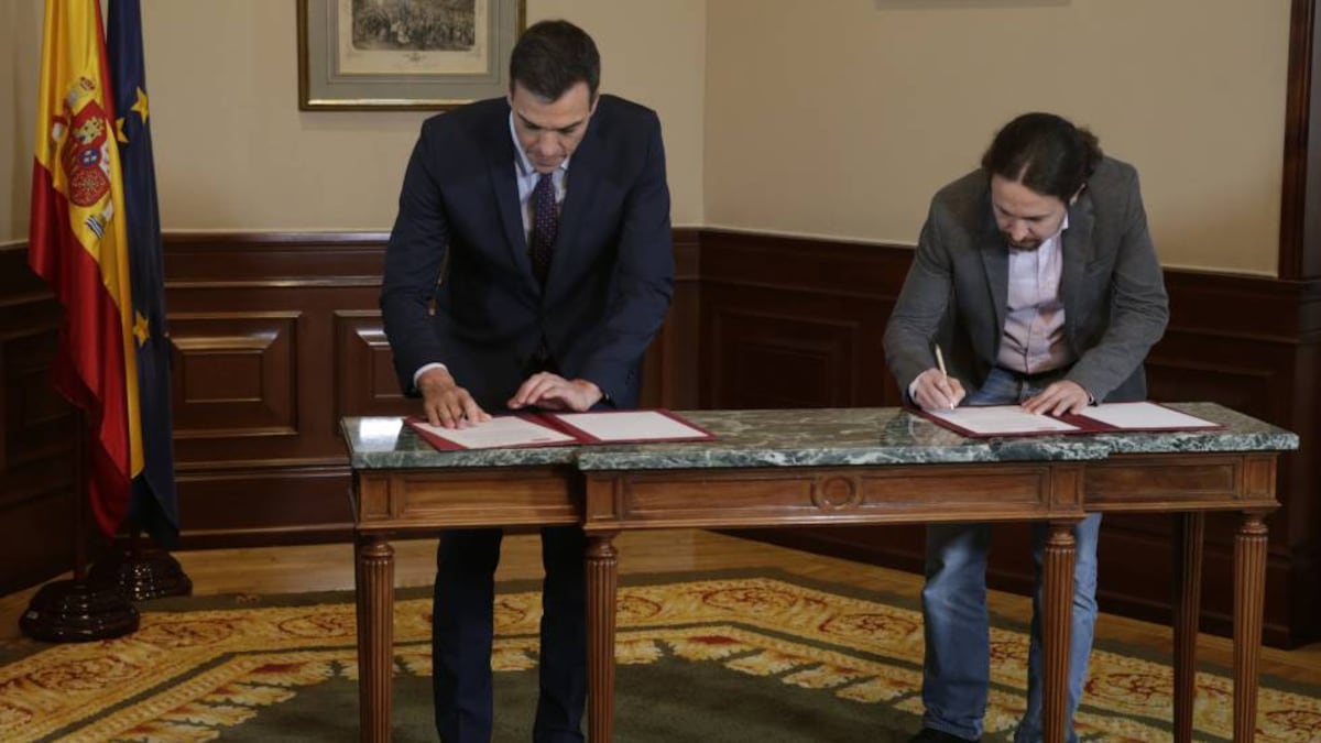 Tras el preacuerdo entre Sánchez e Iglesias, Adriana Lastra e Irene Montero entraron en los detalles para pactar un decálogo de líneas maestras de un programa de Gobierno “para cuatro años”, según Sánchez. La primera coalición de izquierdas desde la II República coloca a España como caso único en Europa con un Gobierno entre la socialdemocracia y una formación a su izquierda de nuevo cuño que recaba su fuerza del movimiento del 15-M.