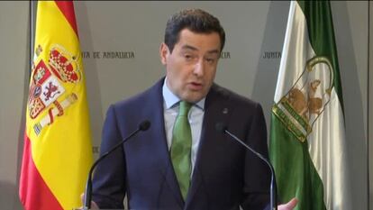 El presidente de la Junta de Andalucía presenta a su Gobierno como una ruptura con la corrupción del PSOE, mientras su socio, Ciudadanos, pide a Susana Díaz que asuma responsabilidades