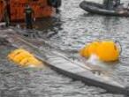 Análisis técnicos: El narcosubmarino ha sido ya traslado en un camión góndola para ser examinado a una zona próxima al puerto de Aldán, una de las parroquias de este pueblo de 26.000 habitantes, tras ser izado por do enormes grúas para izarlo. El reflote de la nave se logró después de que a media tarde esta se fuese a pique cuando estaba a punto de ser subida por la rampa del puerto, aprovechando la pleamar y con la ayuda de dos barcos pesqueros. Los arneses se soltaron frustrando la operación, que había comenzado sin éxito la noche anterior, cuando tras fracasar en su intento de reflotarlo decidieron arrastrarlo hasta dejarlo a una milla del puerto de Aldán para reiniciar las operaciones al día siguiente.