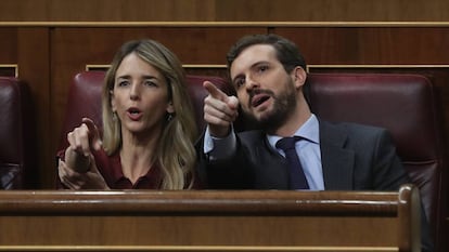 El lenguaje duro de Casado ha reabierto el debate interno sobre la estrategia a seguir. El discurso del líder del PP se parece más al de la campaña electoral del pasado abril —cuando se centró en intentar frenar la fuga de votos a Vox imitando el tono de la formación de Santiago Abascal—, que al del pasado noviembre —cuando aseguraba que Sánchez merecía todo su respeto, aunque el PP no pudiera apoyar su programa—. Con la primera estrategia, los populares se estrellaron en las urnas: pasaron de 137 a 66 diputados. Con el intento de giro al centro y el tono más moderado, Casado obtuvo el pasado noviembre 89 escaños.