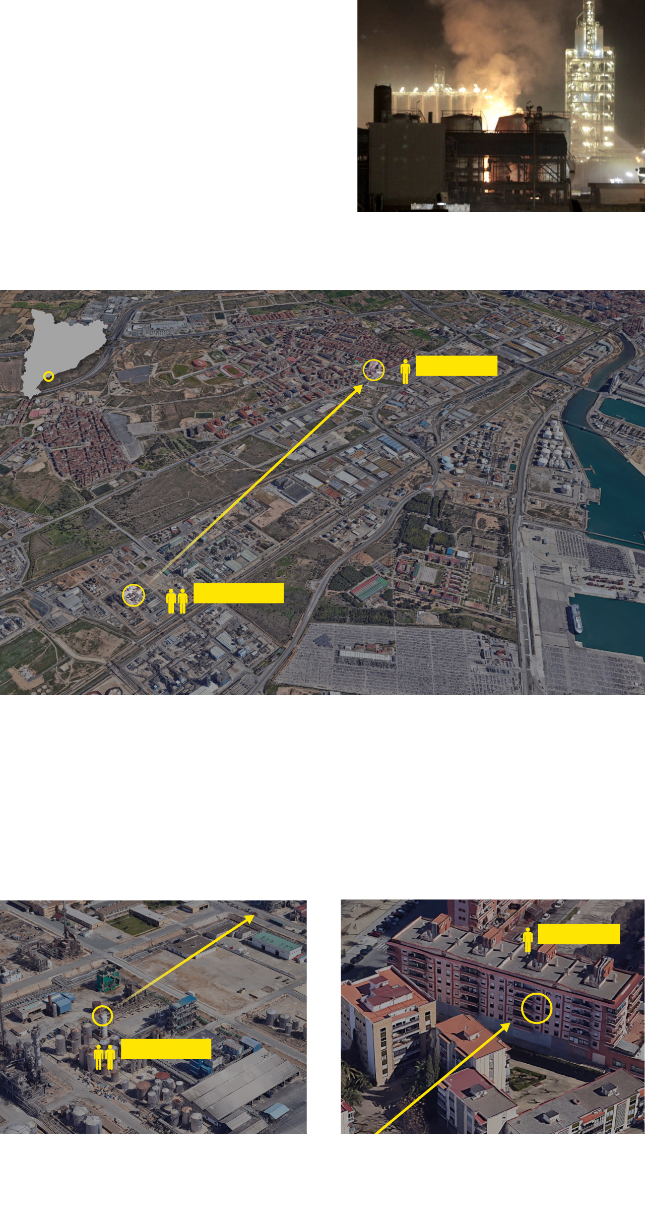Tras la explosión en el tanque de óxido de etileno, la tapa del reactor salió despedida. La placa, de 122 centímetros por 165 y una tonelada de peso, se desplazó más de dos kilómetros y medio hasta impactar con el edificio del barrio de Torreforta donde vivía el fallecido.