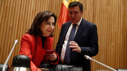La ministra de Defensa, Margarita Robles, ha defendido este jueves la neutralidad política de las Fuerzas Armadas como uno de los mayores logros de la España democrática y ha anunciado “tolerancia cero” con cualquiera que la vulnere. Robles ha hecho esta declaración ante una Comisión de Defensa del Congreso repleta como nunca de exmilitares; especialmente Vox, cuatro de cuyos cinco representantes han pertenecido a los ejércitos. A ellos se suman los portavoces del PP, el general Fernando Gutiérrez Díaz de Otazu; y del PSOE, la comandante Zaida Cantera.