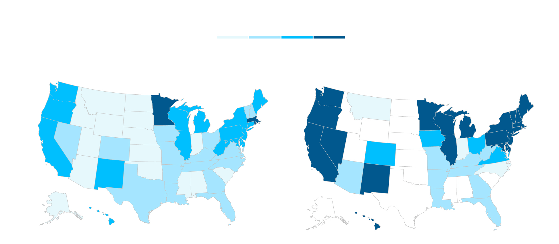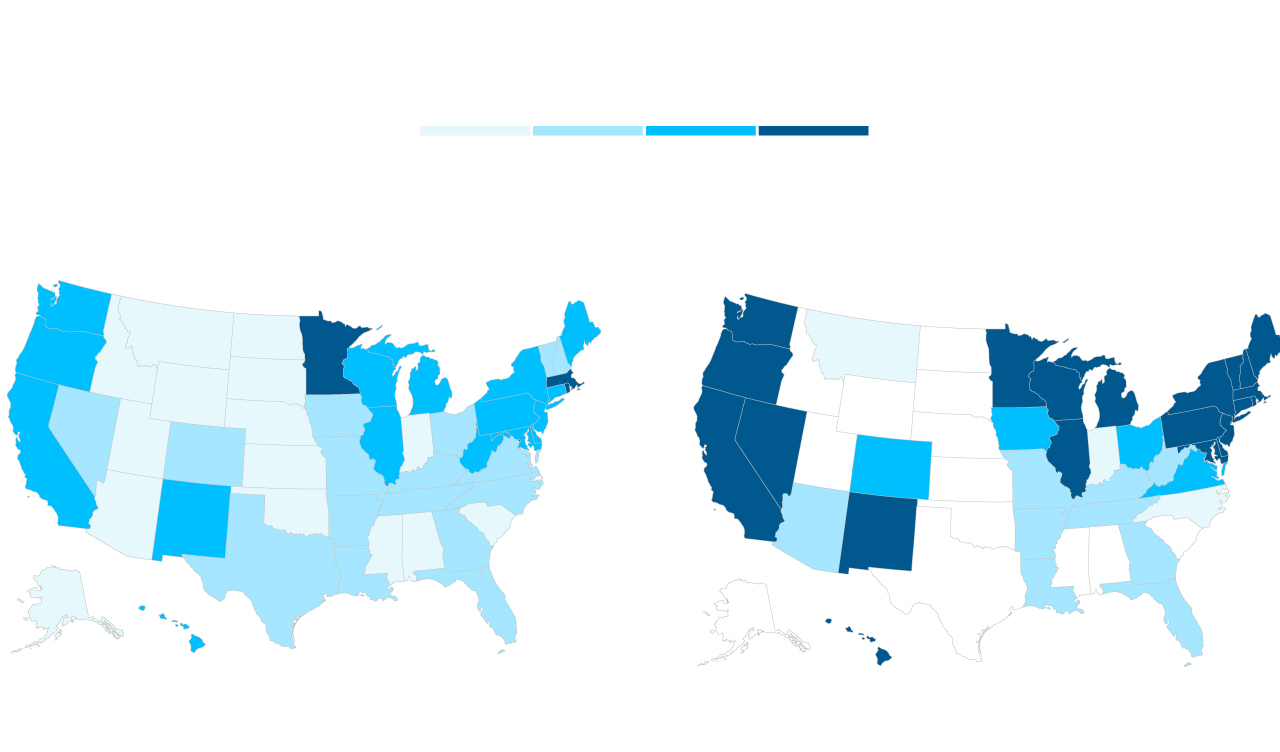 Biden bate récords para los demócratas en California, Virginia y Maryland, y segundas mejores marcas en Colorado, el Distrito de Columbia, Massachusetts y Washington. No presenta ningún desastre histórico, entendido como peor dato registrado desde 1948, en ningún territorio, pero sí se ha quedado cerca: ha recogido los segundos peores resultados para su partido en Virginia Occidental y en Wyoming.
