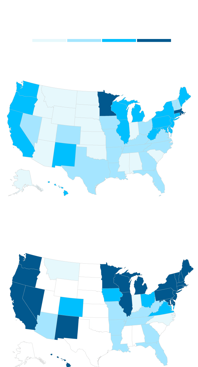 Vermont lleva siendo demócrata desde entonces. No hay que dar por supuesto, eso sí, que su región, el extremo noreste de EE UU, percibida a menudo como coto progresista, lo fue siempre. Desde el final de los cuarenta, el Estado ha sido más veces republicano (10) que demócrata (9). También California, Maine, Nueva Jersey y Oregón son fieles al partido azul desde 1992, pero antes no.