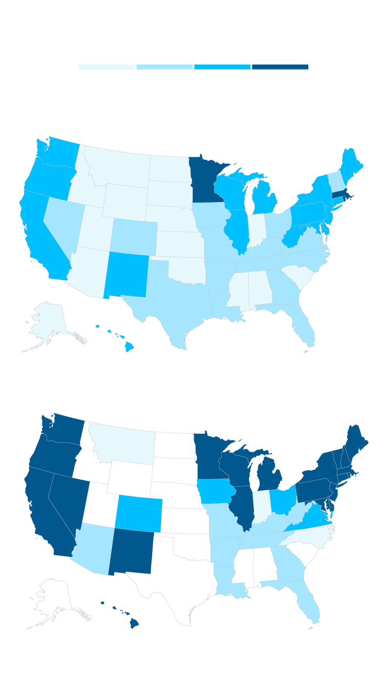 Las cuatro cifras más altas de participación en un Estado desde 1980 se han batido en estas elecciones. El primer lugar lo ocupa el dato de Minnesota, con una participación del 79,9% (lo siguen Maine, Colorado y Iowa). La participación en ese Estado, de clara devoción demócrata, siempre ha sido la primera en todas las elecciones desde 1948, salvo en 1992, cuando lo superó Maine, otro territorio amigo de acudir masivamente a las urnas.
