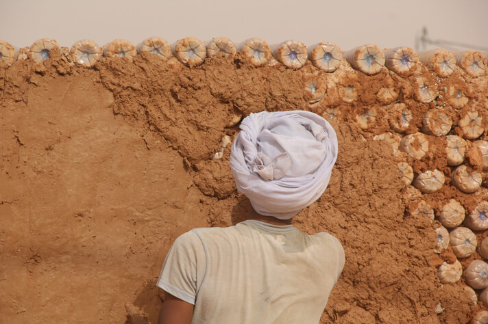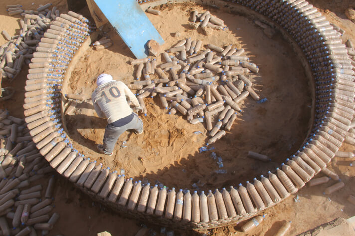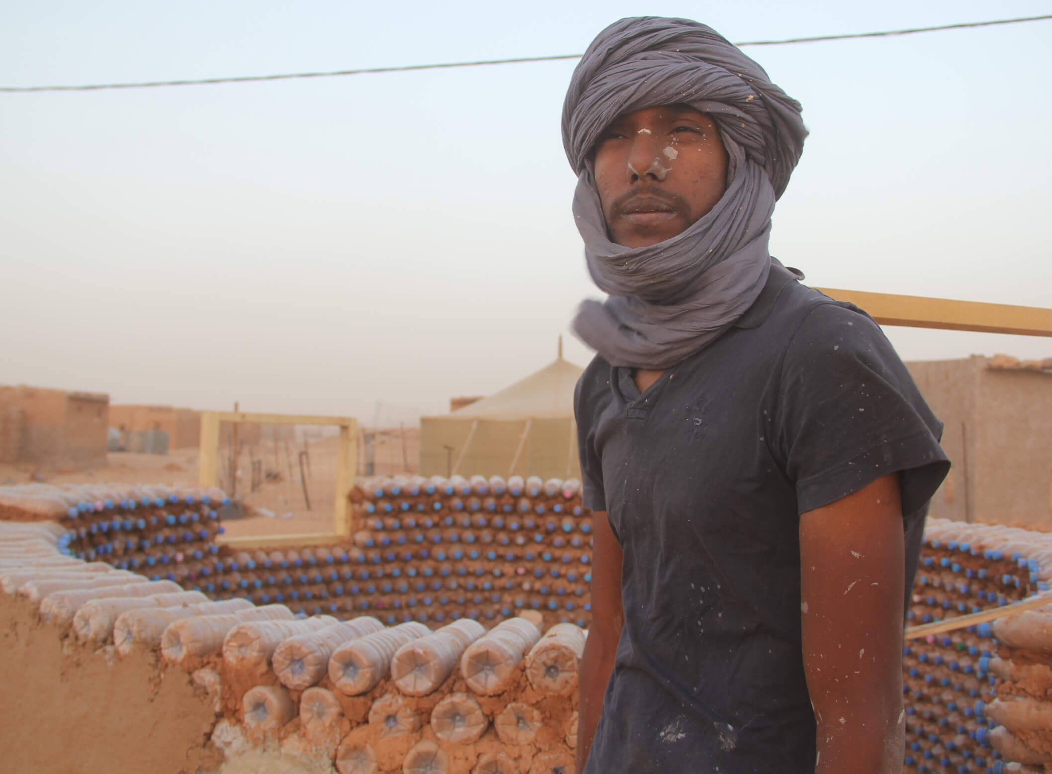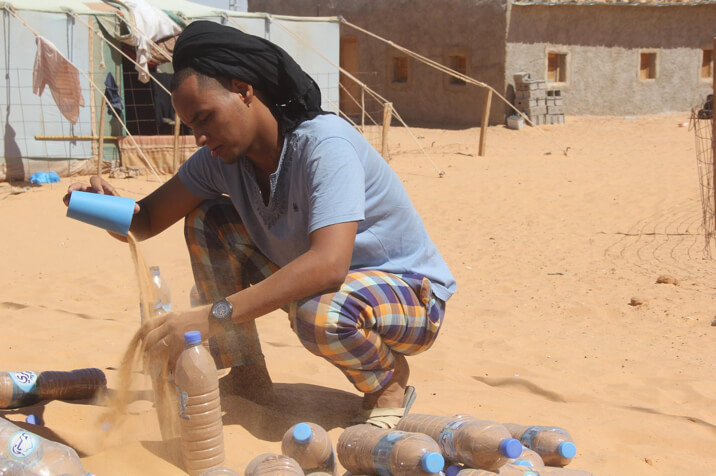 Al saharaui de 31 años Tateh Lehbib le llaman loco desde que en 2017 construyó 25 casas con botellas de plástico y arena en la hamada argelina.