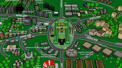 En la búsqueda de una solución a los problemas de densidad de tráfico que combinara urbanismo y transporte sostenible, John D. Kasarda planteó el concepto de aerotrópolis. Incluida por la revista 'Time' en 2011 como una de las diez idea que cambiarán el mundo, una aerotrópolis es una ciudad, con sus oficinas, tiendas, hoteles, viviendas y zonas de ocio, creada junto a un aeropuerto. "A menudo, los Estados Unidos y Europa Occidental consideran los aeropuertos como molestias ambientales y no como una infraestructura crítica para competir y prosperar, lo que ha resultado en el descuido de los aeropuertos, mientras que Asia y Oriente Medio invierten fuertemente para aprovecharlos. Tal negligencia es un peligro económico a largo plazo para Occidente", defiende Kasarda en la página web de su empresa. Bajo esta premisa, ha surgido en Corea del Sur la ciudad de Songdo, a 65 kilómetros de Seúl, unida por un puente de 21 kilómetros de longitud con el aeropuerto de Incheon. Comenzada a construir desde cero en 2003, este prototipo de aerotrópolis está diseñada para una población de 75.000 personas y 300.000 puestos de trabajo y para recorrerse a pie.