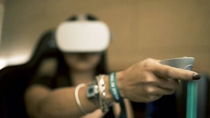 Para que nadie se lleve a engaños, desde el minuto uno queda claro que lo que vamos a experimentar ni es un concierto en directo ni nada parecido. La realidad virtual nos ayudará a sumergirnos en las notas, los acordes, la melodía, el ritmo… a sentir la música de Miss Caffeina; pero como un piloto de la actuación en directo que grabaron para el programa Sesiones, de Movistar+. El propio David del Val, director de innovación interna de Telefónica, asegura que se trata de una experiencia musical diferente de la que no sabe hasta dónde puede llegar en un futuro. “Estamos en un momento de ver todas las posibilidades, de buscar nuevos formatos para la producción musical y el consumo de estos productos”, explica.