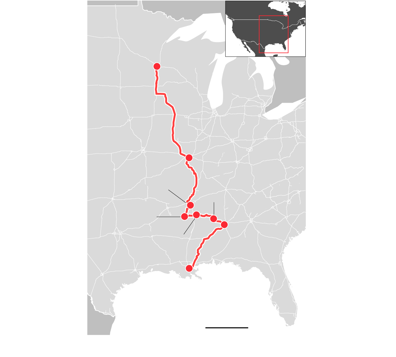 La entrada en Minnesota es casi a medianoche y, aunque estamos en agosto, la baja temperatura hace evidente que nos hemos acercado a Canadá. Casi 2.500 kilómetros desde la partida en la costa de Luisiana, siete estados recorridos en diez días. “El jazz nació en Nueva Orleans; el zydeco en el bayou; el blues se originó en el delta, mientras que el rock and roll surgió de Memphis”, escribe Paul Schneider en su gran libro sobre el Misisipi, Old Man River, describiendo una ruta similar a la de esta serie por la América negra.