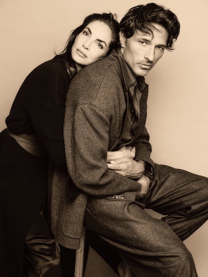 Nunca hay rigidez en Armani y, quizá por eso, muchos de sus colaboradores le han sido fieles durante años. Eugenia Silva dio sus primeros pasos en Milán de la mano del italiano, que exclamó “Che bella faccia!” [“¡qué cara tan bonita!”] cuando vio por primera vez a aquella modelo anónima. “Mi relación con Armani ha ido evolucionando a medida que yo he ido evolucionando como mujer, y él siempre ha estado a mi lado”, cuenta la modelo, que con los años pasó a ser una habitual de su colección de alta costura, Armani Privé, y también de su exitosa línea de cosmética y perfumes, Armani Beauty. Su armario atesora varias piezas especiales que han pasado la prueba del tiempo. “Tengo esmóquines suyos de hace 25 años y siguen estando perfectos”, cuenta. “¿Cuántas chaquetas de terciopelo negro se pueden lanzar cada año? Pues las suyas son imbatibles. La mía sé que va a estar conmigo toda la vida, porque la llevo a todas partes”.