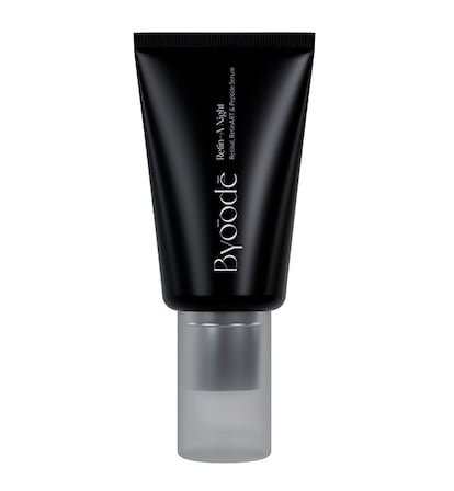 Sérum de noche de Byoode que combina retinal y retinart con péptidos, factores de crecimiento, vitaminas C y E, ácido hialurónico y niacinamida. Mejora la firmeza, hidratación y luminosidad, y desmiente mitos sobre la incompatibilidad entre vitamina C y los retinoides. 75 €.
