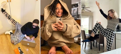 La cuenta de Instagram Working From Home Fits arroja un poco de luz compilando las propuestas estilísticas de todo aquel que, mediante mensaje privado, quiera enviar una foto de cómo se viste en cuarentena. En un momento en el que las imágenes de influencers llevando looks ultraproducidos provoca menos inspiración que nunca, estos prescriptores –anónimos, en su mayoría– despiertan curiosidad y alguna que otra sonrisa. Mezclas de estampados imposibles con zapatillas peludas, coloridas batas hasta los pies (de Missoni, eso sí) o chándal con chanclas y calcetines son algunas de las combinaciones registradas en la cuenta.