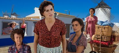 Penélope Cruz y las lavanderas del río –con Rosalía debutando en el cine y convertida aquí en Rosita– recrean una estampa retronostálgica en la que la belleza del campo y el cante en comunidad tejen ese hilo de sororidad intergeneracional de las mujeres criadas en pueblos. Mujeres unidas a la fuerza por la esfera doméstica y sin el cobijo del anonimato y libertad que promete la urbe. «Ojalá fuese un hombre para bañarme en el río desnuda», dice Rosita mientras el resto ríe la audacia de la más joven. La aparente escena bucólica rota cómicamente ante la ocurrencia de pensar que ese río puede servir para disfrutarse y no para lavar ropa. Con la de faena que tienen por delante como para cuestionar su existencia por un baño en el río. El delantal como símbolo (y frontera) de su destino.