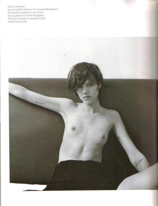 Los 90 fueron los años de reinado de Kate Moss. Cada anuncio que protagonizaba la modelo generaba controversia por su extrema delgadez y su aspecto de niña. La polémica le venía de perlas a Calvin Klein, que no cesaba de contratarla para sus campañas de Obsession. Además, de asueto no había ni rastro del glamour actual, sino que compartía con Johhny Depp el estilo grunge. Freja Beha es una de las modelos del momento. Su look andrógino y su cuerpo sin curvas recuerda mucho a una joven Kate Moss. La modelo belga luce además varios tatuajes y un piercing en el pezón, tan 90's…