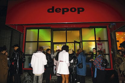 Depop se posiciona así en la equidistancia entre Instagram y aplicaciones de venta de armario como Vinted. Los usuarios pueden vender personalmente o crear tiendas digitales pero, ante todo, sus perfiles exhiben una estética cuidada y muy específica; son influencers y vendedores. «Mi trabajo es dialogar con ellos –explica María–. No solo saber cuáles son sus necesidades, sino también poner de relieve esa comunidad que han creado a través de eventos digitales y a veces físicos. Incluso resaltamos el perfil de algunos de ellos fuera de la app para que vean de qué se trata esto. Porque al final, de un tiempo a esta parte, hay muchos compradores y vendedores en Depop que están creando tendencia dentro y fuera de la aplicación«, apunta. Esa es precisamente la imagen de marca que ha logrado Depop: para muchos no es un mero mercadillo digital, sino un hervidero de tendencias reales, esas que no llegan a los medios de comunicación hasta que son masivas. Mientras medio mundo dejaba de consumir desaforadamente en confinamiento y, los que lo hacían, se decantaban por prendas cómodas y muy básicas para teletrabajar, durante los meses de cuarentena en Depop cotizaba al alza «el cottagecore [prendas de estética bucólicas], la joyería extravagante hecha a mano, las faldas de tenis customizadas o las camisetas de películas de los noventa, lo que demuestra que esas horas de cuarentena avivaron la creatividad de los usuarios«, explica María.