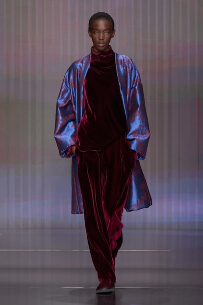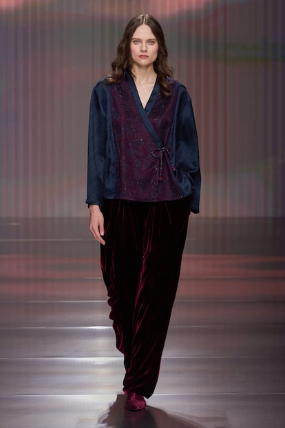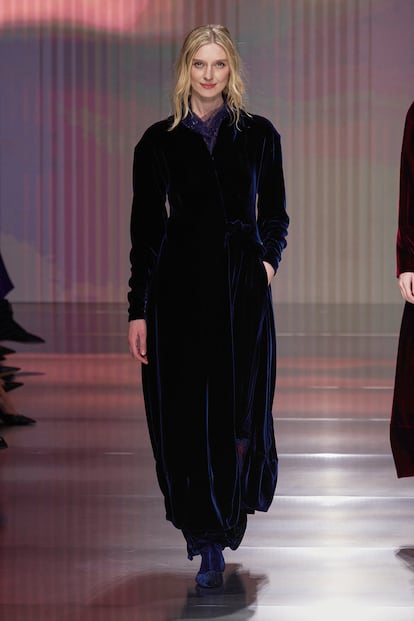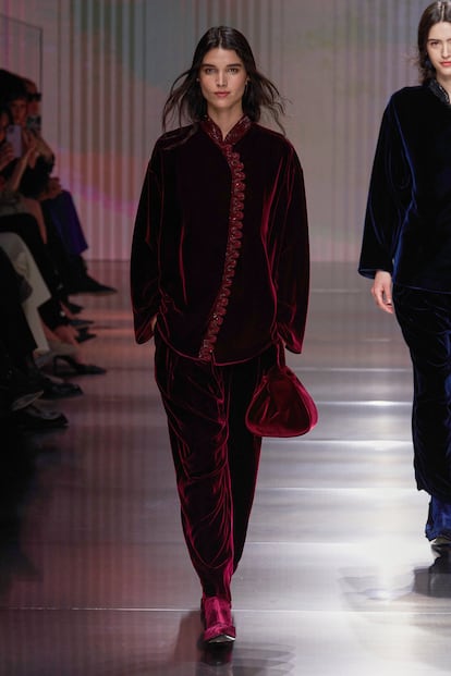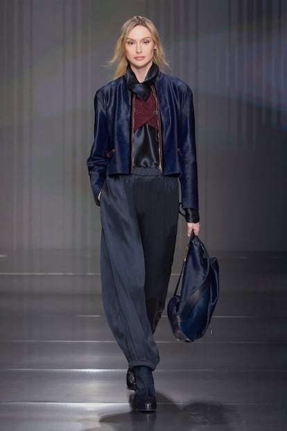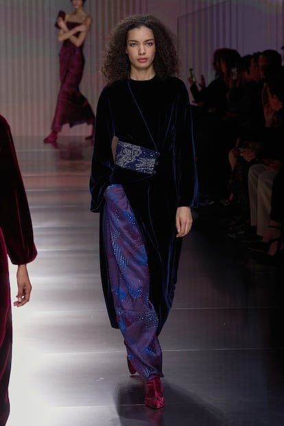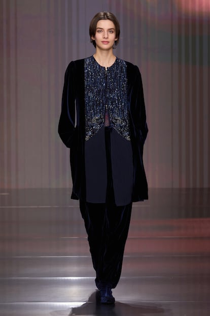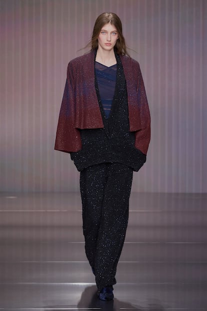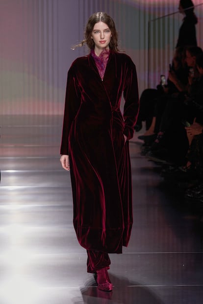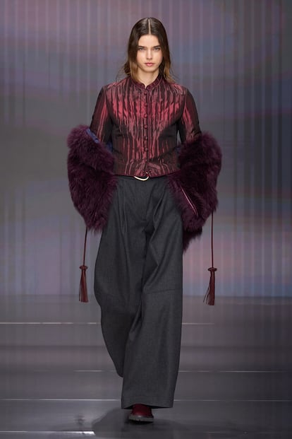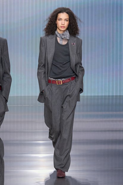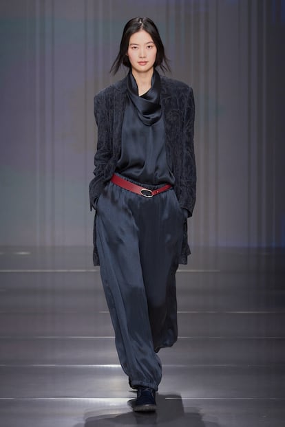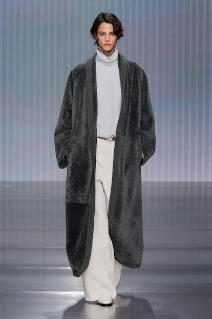 Fluidez, superposiciones, búsqueda de la comodidad y mezclas de materiales se conjugan en la colección otoño-invierno 2026/27 de la firma, la primera bajo la batuta de Silvana Armani