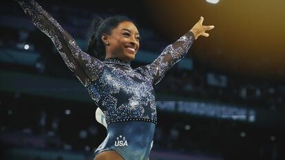 Entre los fans que acudieron a las gradas del Bercy Arena para ofrecerle su aliento y aplauso estaban nombres como Lady Gaga, Tom Cruise, Ariana Grande, Greta Gerwig, Jessica Chastain o Anna Wintour, pero ninguna estrella brilló, literal y figuradamente, más que Simone Biles. La gimnasta más laureada de la historia, ganadora de siete medallas olímpicas que se verán multiplicadas en las próximas horas, ha cumplido con las desbordadas expectativas en su debut en los Juegos de París 2024, clasificándose para la final de tres de los cuatro aparatos. La tejana de 27 años regresa al foco olímpico tras superar los episodios de ansiedad y depresión que la llevaron a retirarse de la cita de Tokio, celebrados en 2021, y que la convirtieron, a su vez, en un símbolo de la imprescindible atención de la salud mental. Establecida como estrella absoluta de la capital francesa y filón de audiencias televisivas, “más fuerte, más inteligente, más madura y más fiable que nunca” en sus propias palabras, no hay nada que no haga resplandecer a Simone Biles en la ciudad de la luz. Ni siquiera su vestuario.