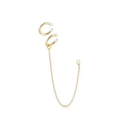 Inspirada en el sólido vínculo entre dos personas, los aros entrelazados de Batala representan esta unión irrompible con un baño de oro 18K sobre plata de primera ley y perlas.