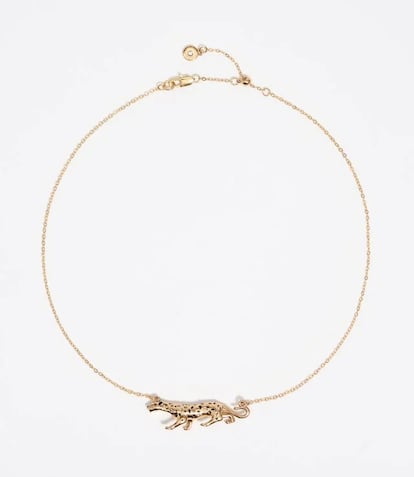 Este otoño se imponen los delicados colgantes frente a maxicollares a la hora de embellecer nuestro cuello. Este diseño en latón envejecido y con una pantera esmaltada en el centro es un ejemplo.