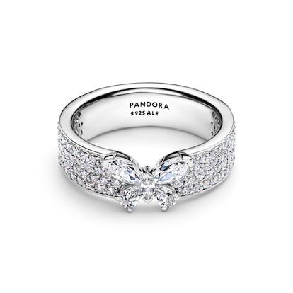 Anillo de mariposa en plata de primera ley con 99 circonitas cúbicas, que combinan belleza y fortaleza. Su diseño con la mariposa central lo hace especial y original. Un acierto asegurado.