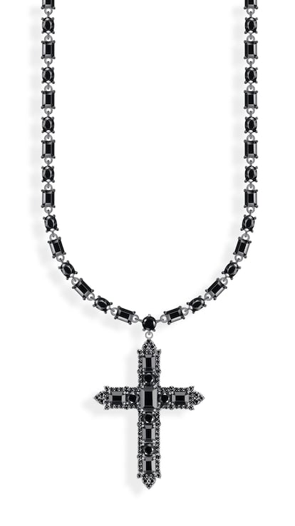 El legendario joyero alemán ha hecho de las cruces y la estética gótica dos piezas esenciales para entender su universo. Tanto la gargantilla como el colgante están adornados con piedras de circonita negra y blanca en diferentes tallas, así como el borde decorado con pavé blanco.