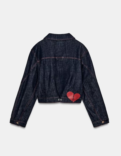 Un corazón roto no debe esconderse siempre, también se puede lucir con orgullo en la espalda de una chupa tejana como este diseño de Zara, con cuello solapa y hombreras.