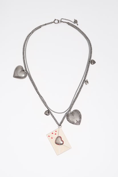 La colección Love Letters de la firma española para este San Valentín rinde homenaje a todas esas palabras que nos llenan de ternura y pasión con charms en forma de carta, que acompañan este collar en plata envejecida junto a un puñado de corazones.