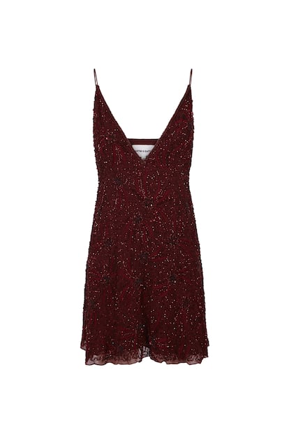 Y siempre quedará como pieza infalible un minivestido con pronunciado escote. Este diseño de la marca francesa en viscosa está totalmente bordado a mano con cuentas y hilos en contrastante.
