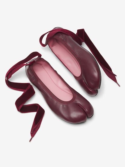 Las bailarinas con puntera Tabi diseñadas por Manuela Asensi y Victoria Viscarret, reconocibles por su pisada estilo barefoot -un tipo de calzado que imita la sensación de caminar descalzo– se lanzan ahora con cintas de bailarina y románticos colores como rojo vino.