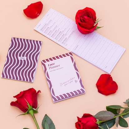 Un espectacular ramo de rosas y flores moradas, chocolatinas y un Love planner para generar recuerdos en pareja es la fórmula que propone esta floristería online para sorprender este día..